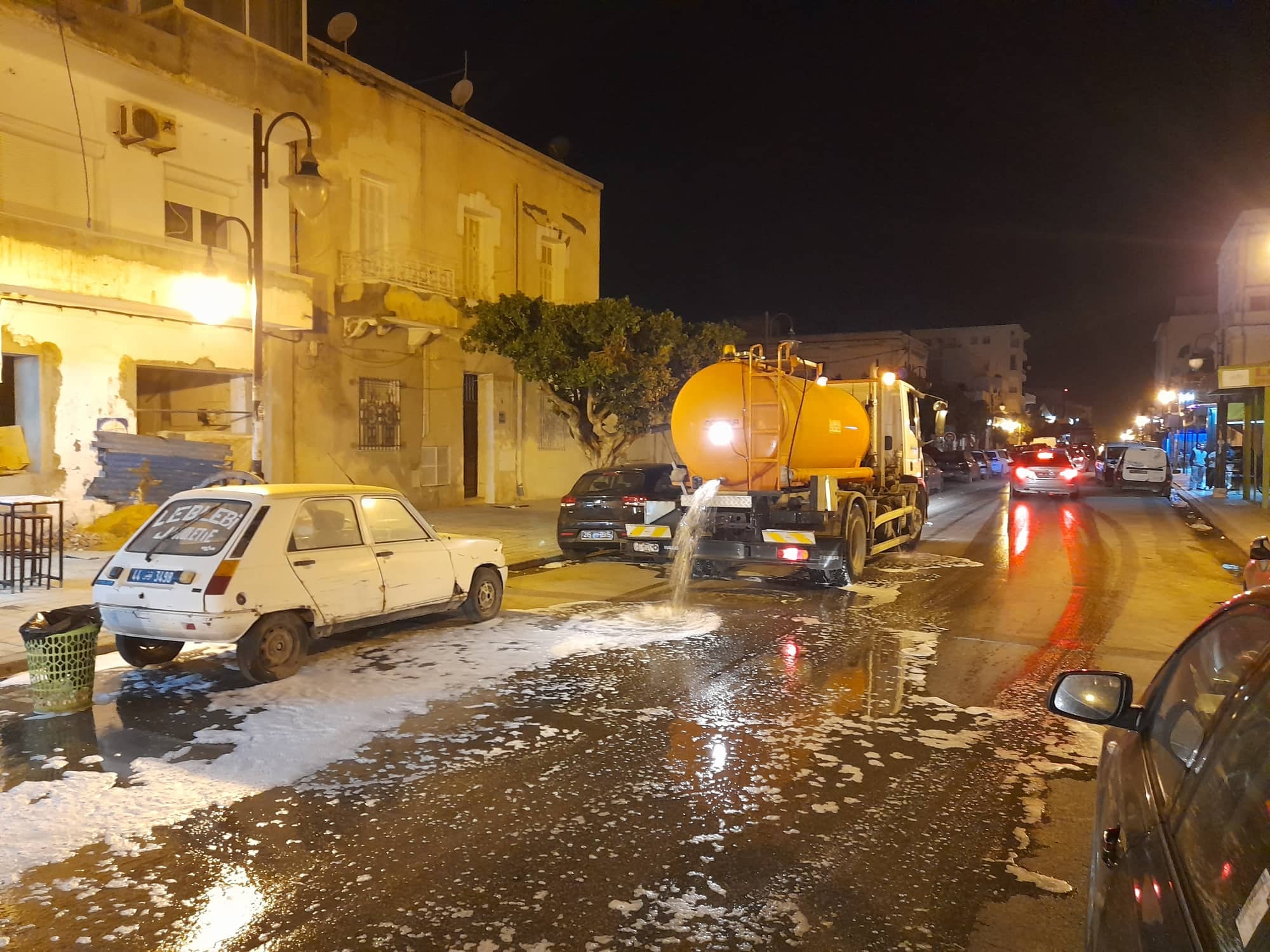 حملة نظافة ليلية شاملة بكامل منطقة حلق الوادي. شارع روزفالت شارع الحبيب بورقيبة شارع الجمهورية