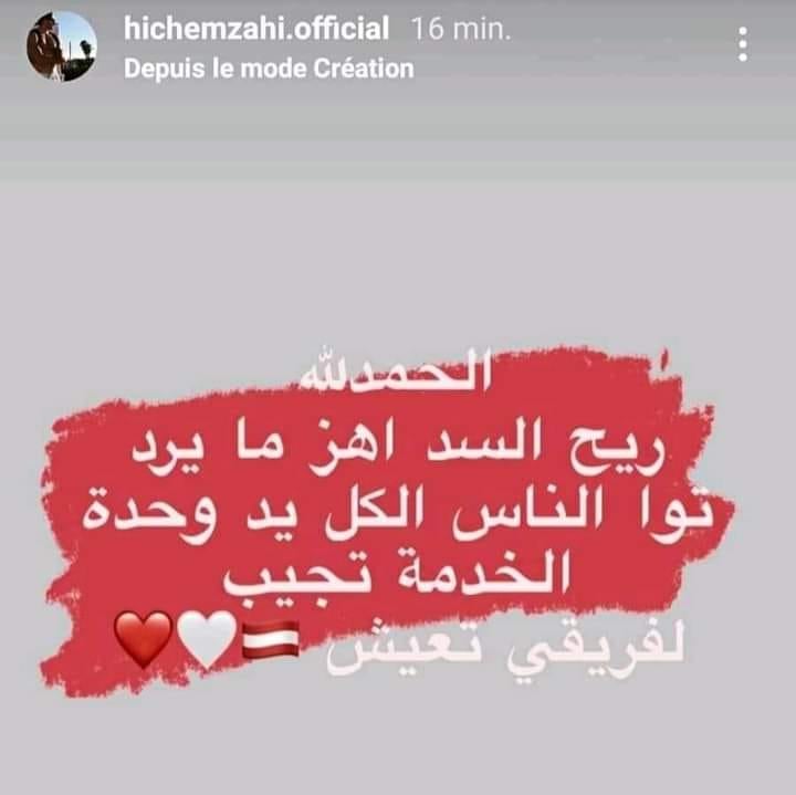 هذا و نشر لاعب كرة السلة هشام الزاهي تدوينة على صفحته فالإنستجرام