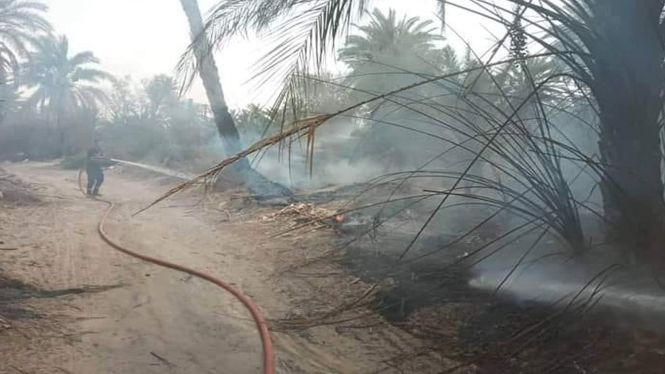 اندلع صبيحة اليوم حريق في واحات المطوية تسبب في إتلاف عدد كبير من النخيل
