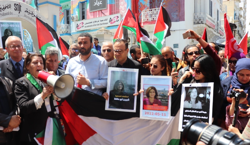 Le Syndicat national des journalistes tunisiens (SNJT) a organisé, mercredi 11 mai 2022, un sit-in en la mémoire de la journaliste de la chaîne Al Jazeera Shireen Abu Akleh tuée dans la matinée par un tir des forces armées israéliennes.