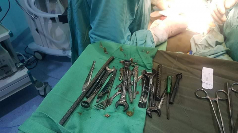 Il est rapporté que la même personne dans les temps précédents a avalé des morceaux de fer utilisés dans la construction, des clés pour réparer les dégâts de voiture, des fourchettes à manger, des tournevis et de petits morceaux de métal.